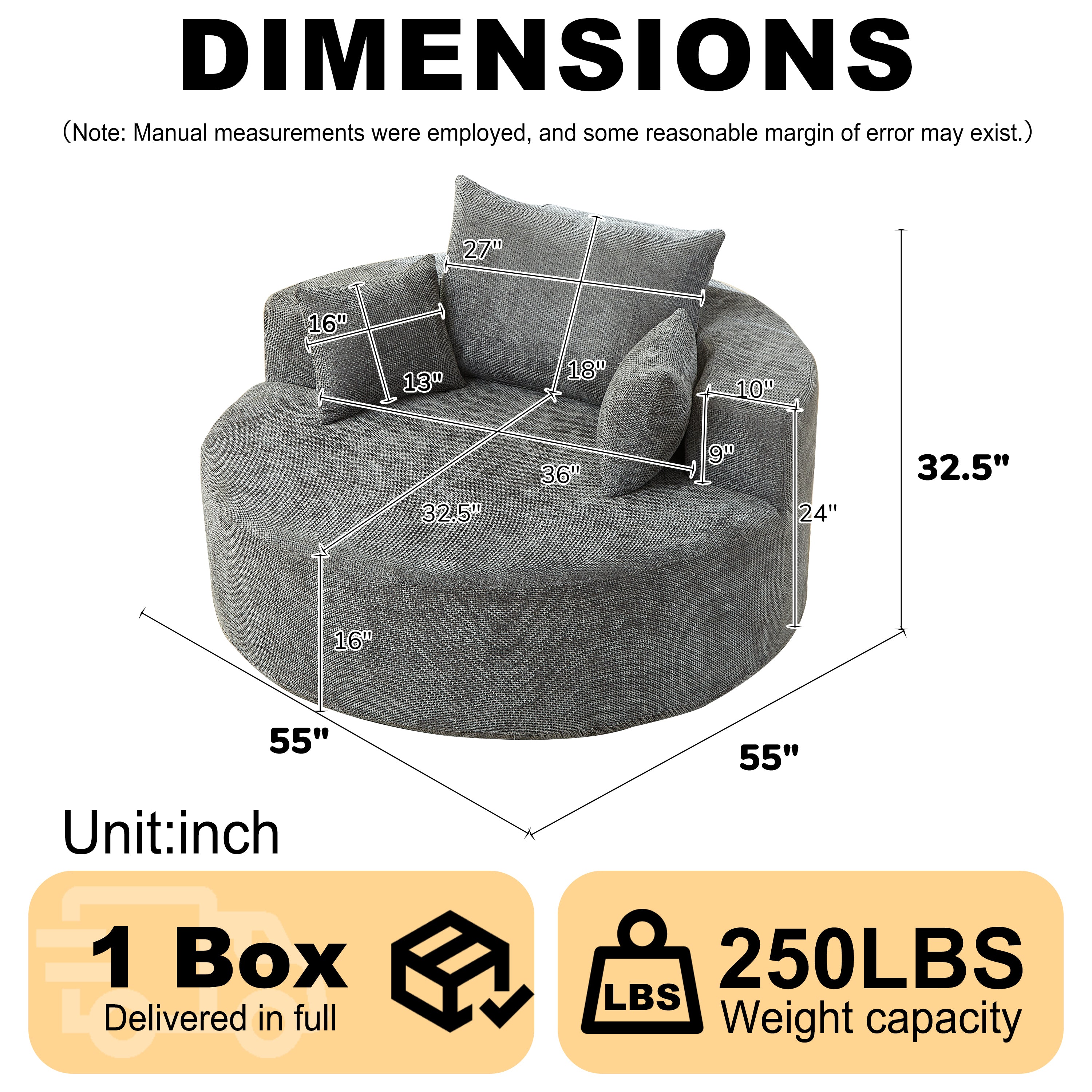 55'' Chenille Foam Single Swivel Chair