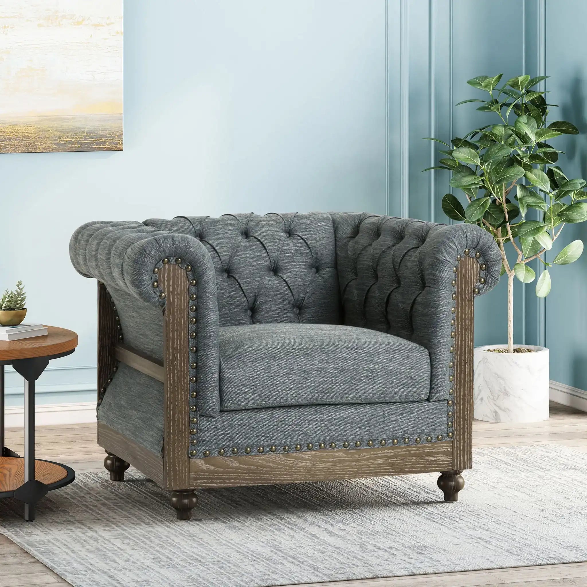 Fabric Upholstered Club Chair With Scrolled Tuxedo Arms