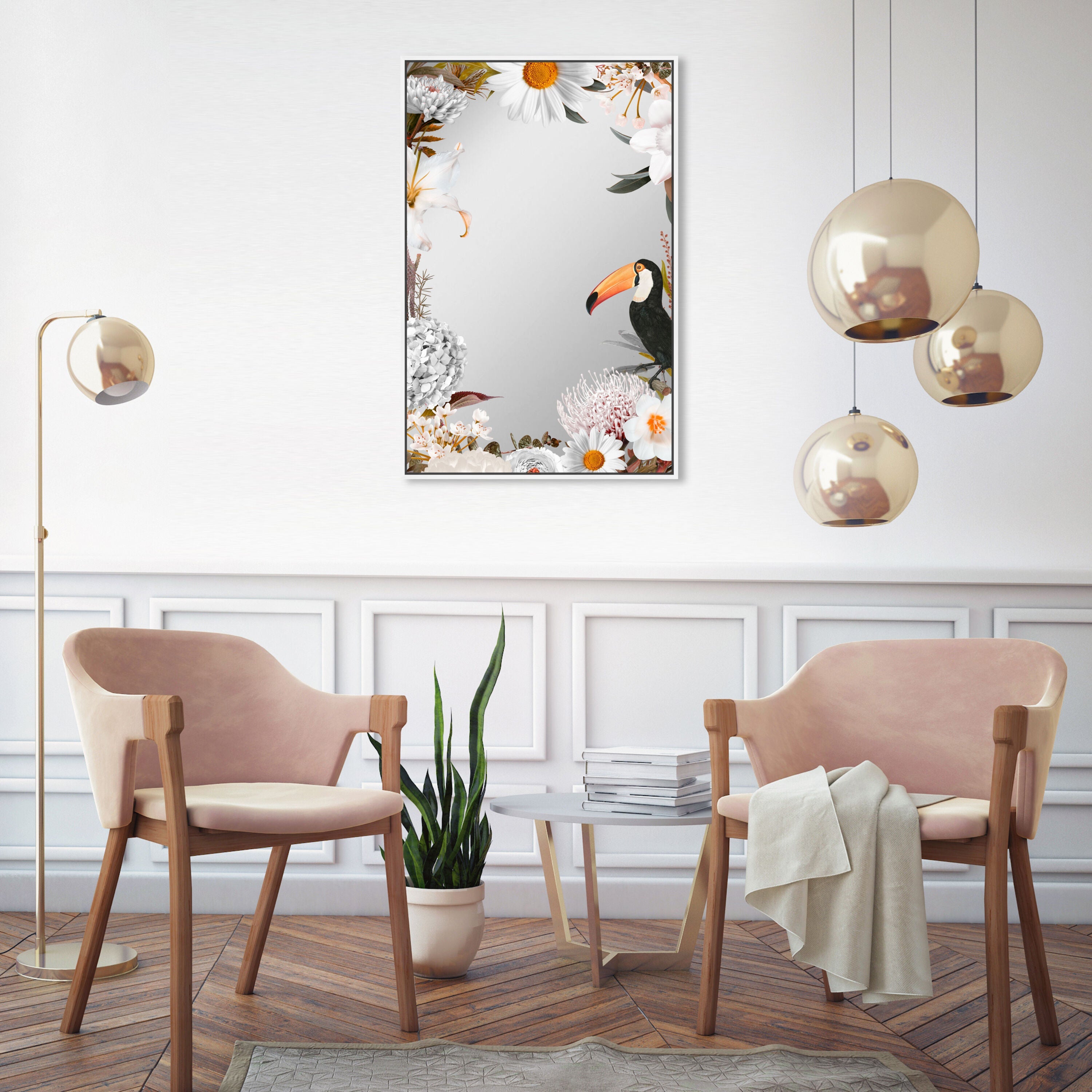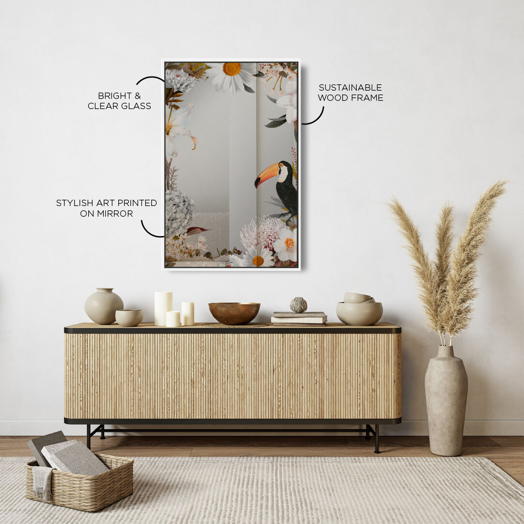 Tucan White Floral Mirror